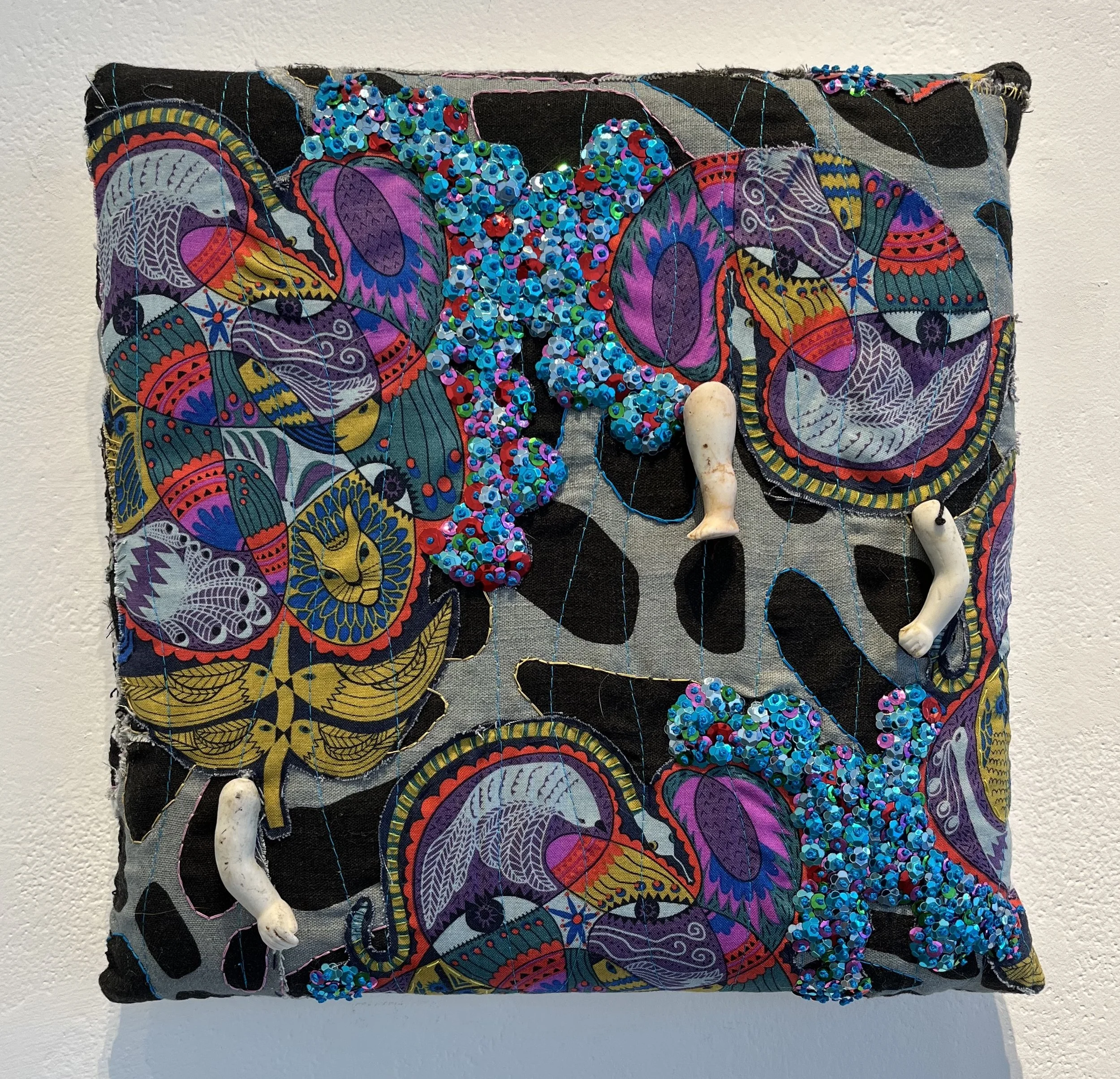 Amalgamation - Messengers, Mixed Media Pillows, 2025, approx. 12” x 12”