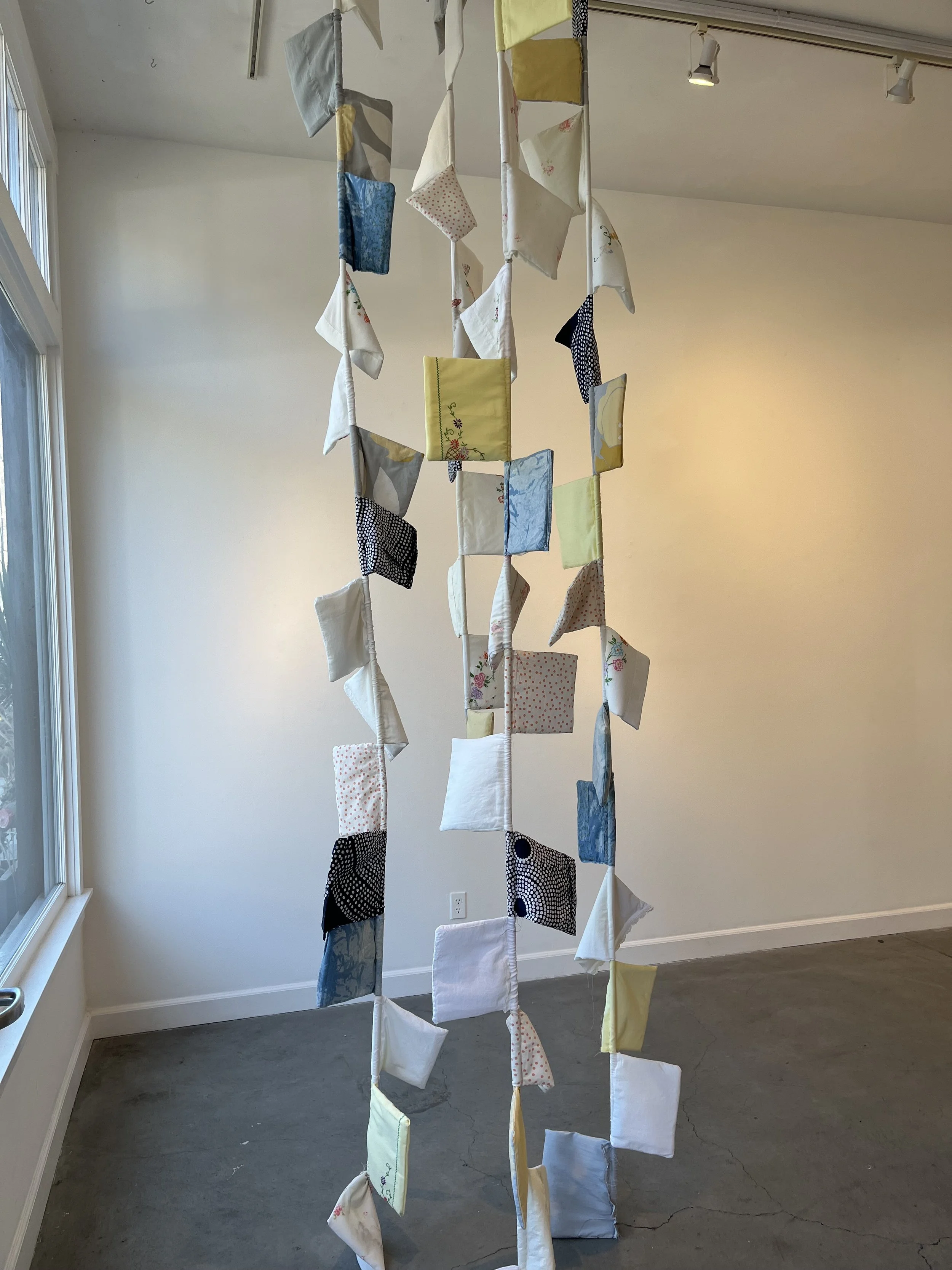 Amalgamation - Sequence, Mixed Media Pillows, 2025, approx. 12” x 12”